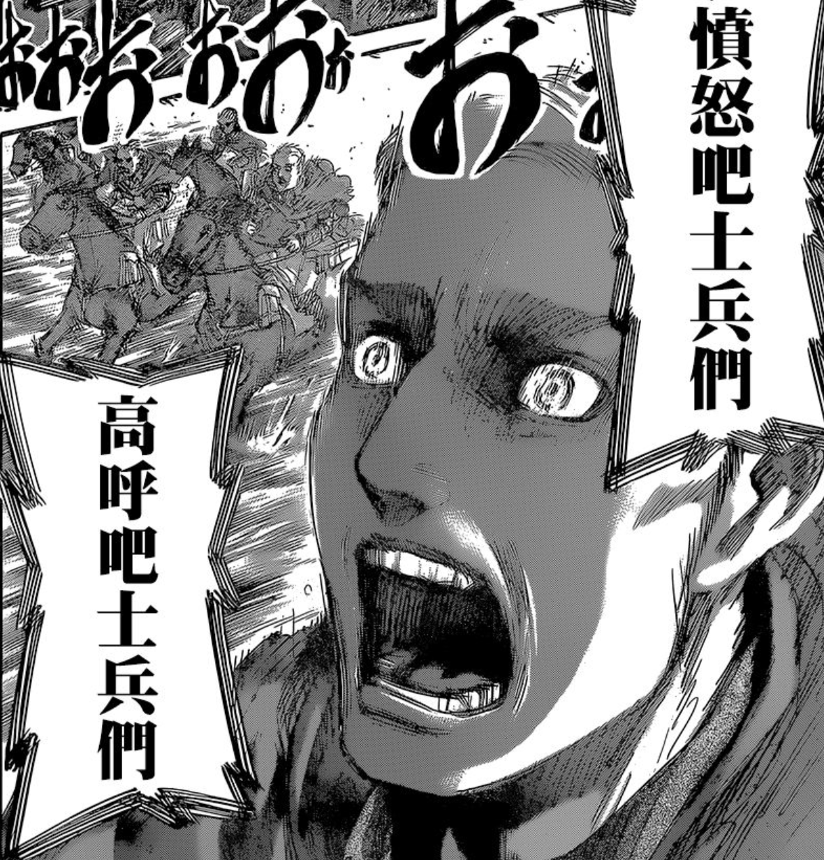 艾爾文此時以全人類福祉與自由為名站了出來,作為一個賭徒,將自己與整個調查兵團作為籌碼、將所有關聯者連結起來,撐起整起推翻王政的革命。